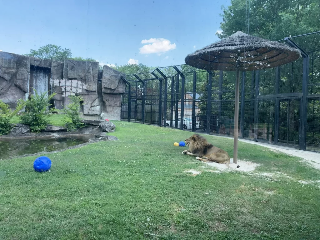 学校のシンボルのライオンが飼育されています。噴水のすぐ横にいるので、いつでものぞくことができます。
