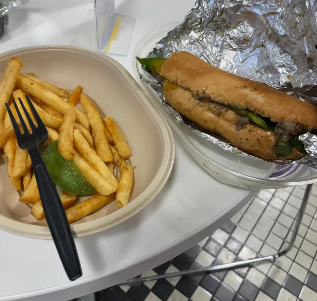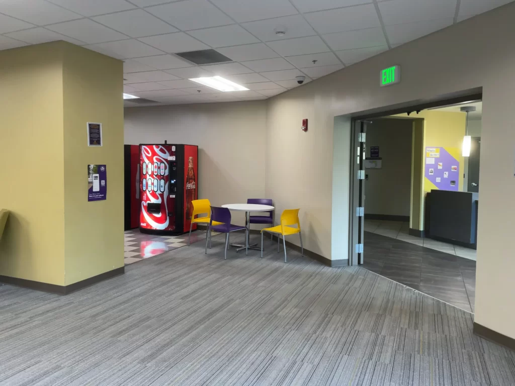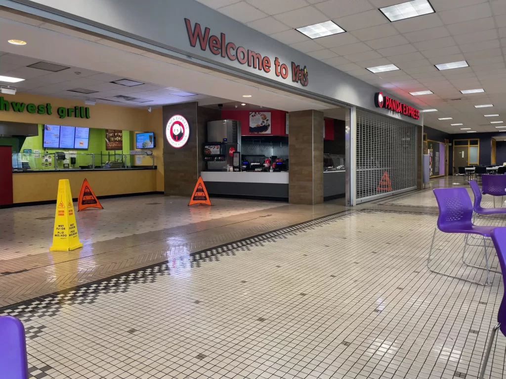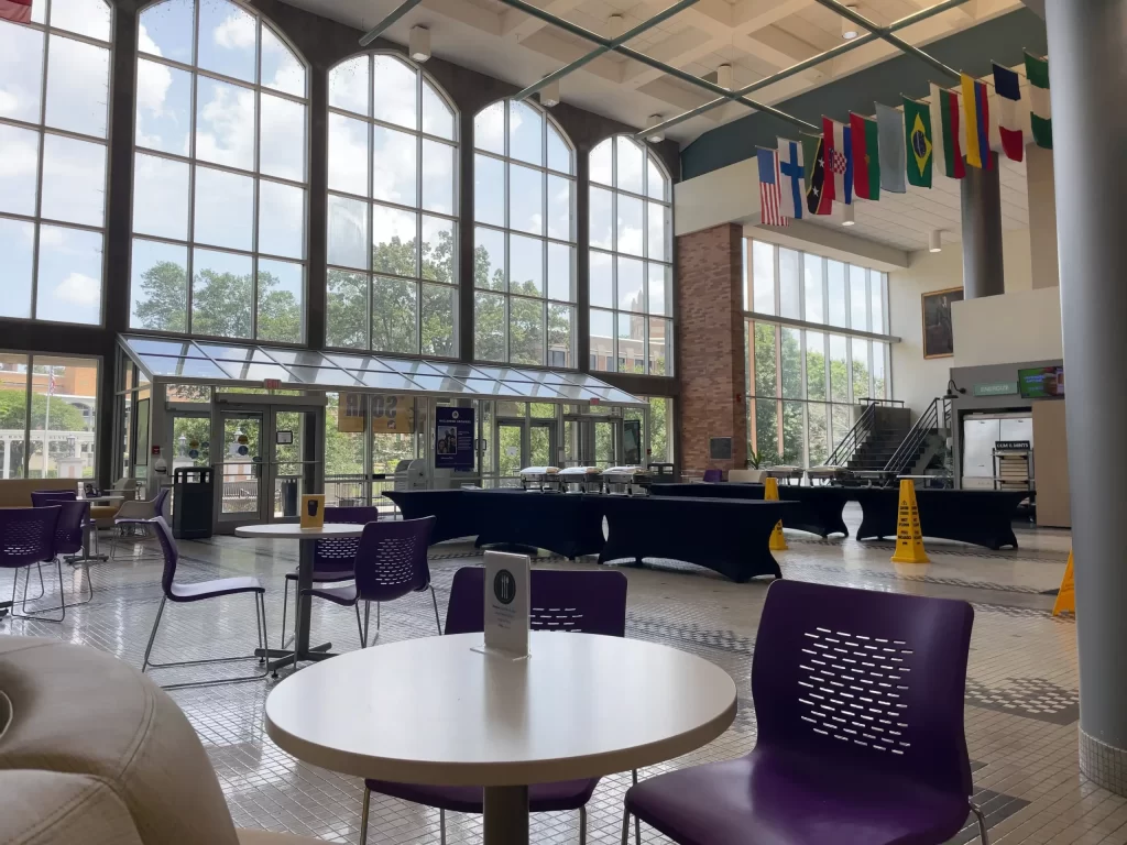パンダエクスプレスなどが入っている建物で、イベントや日ごろの食事などで多くの生徒に使われています。授業がある日はほぼ毎日利用していました。真ん中の黒いテーブルは、新入生歓迎会のための食事です。